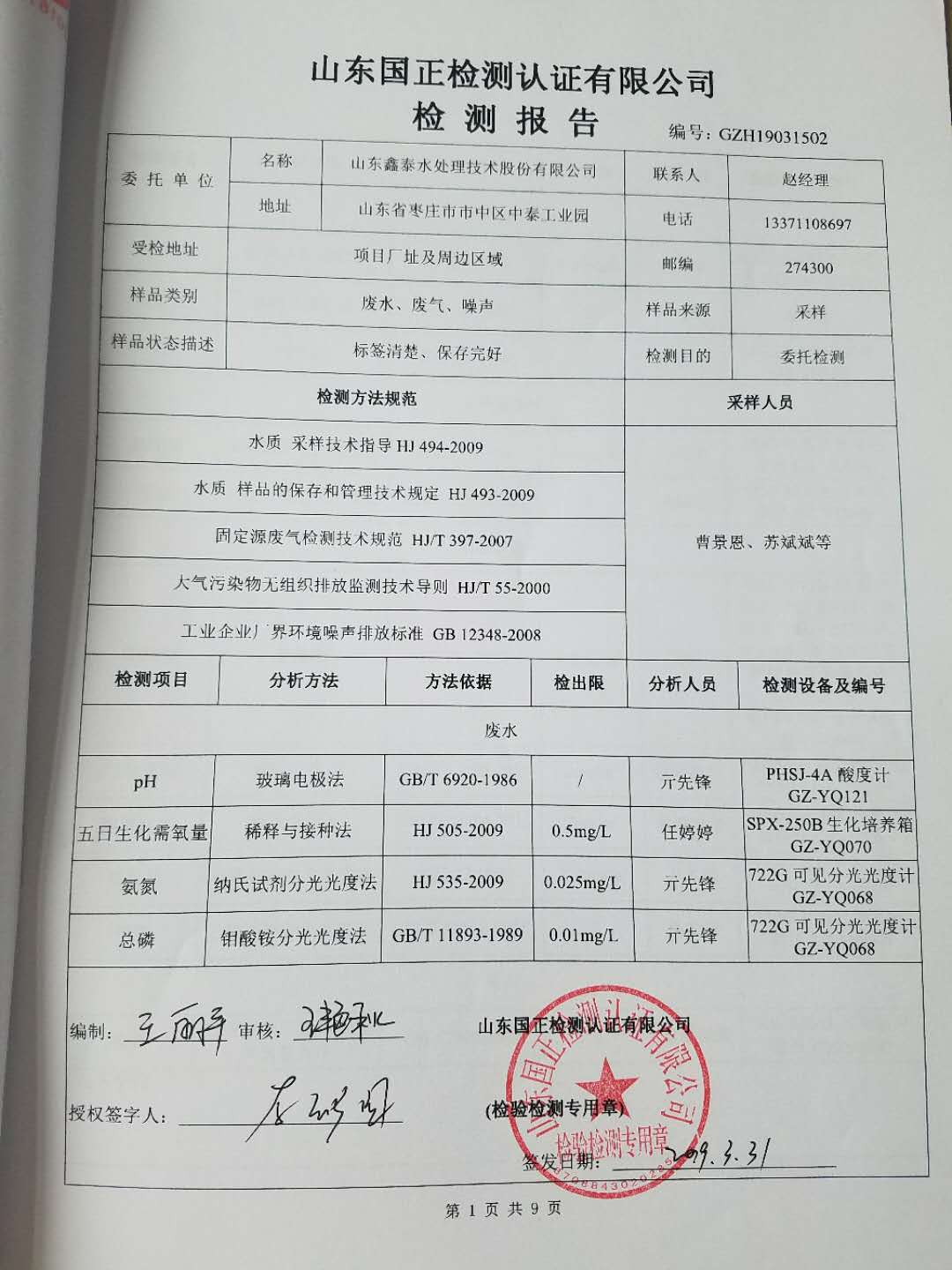 | 主要內(nèi)容 | 與山東國(guó)正檢測(cè)認(rèn)證有限公司簽訂環(huán)境檢測(cè)協(xié)議,委托第三方機(jī)構(gòu)對(duì)我公司進(jìn)行環(huán)境檢測(cè),檢測(cè)頻次、地點(diǎn)及項(xiàng)目等與環(huán)評(píng)報(bào)告要求一致。 |